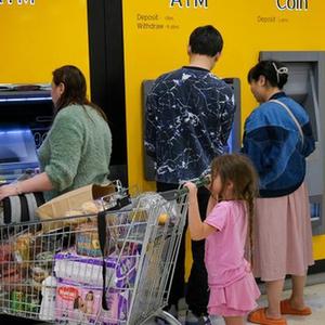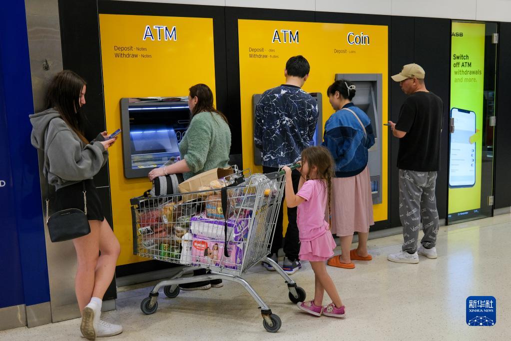 11月21日,人们在新西兰最大城市奥克兰的一处自动提款机前等待取款。