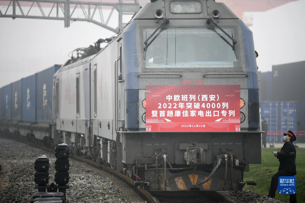 当日,满载家电产品的X8151次中欧班列从西安国际港站驶出开往欧洲。这是中国铁路西安局集团有限公司开行的首趟中欧班列家电出口专列,同时也标志着陕西中欧班列2022年开行突破4000列。此次中欧班列家电出口专列的开行,为助力国内企业拓展海外市场,推动“中国智造”走向欧洲,促进“一带一路”沿线国家贸易互通起到积极作用。