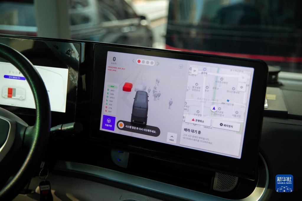 这是11月24日在韩国首尔拍摄的自动驾驶巴士内的显示屏。