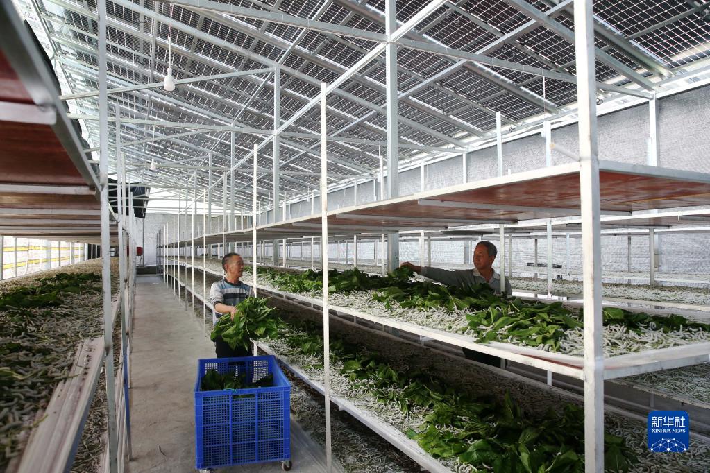 6月6日,重庆市黔江区鹅池镇养蚕农户熊春明(左)在大棚内饲养桑蚕。