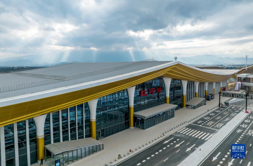 11月24日拍摄的弥蒙高铁红河站(无人机照片)。