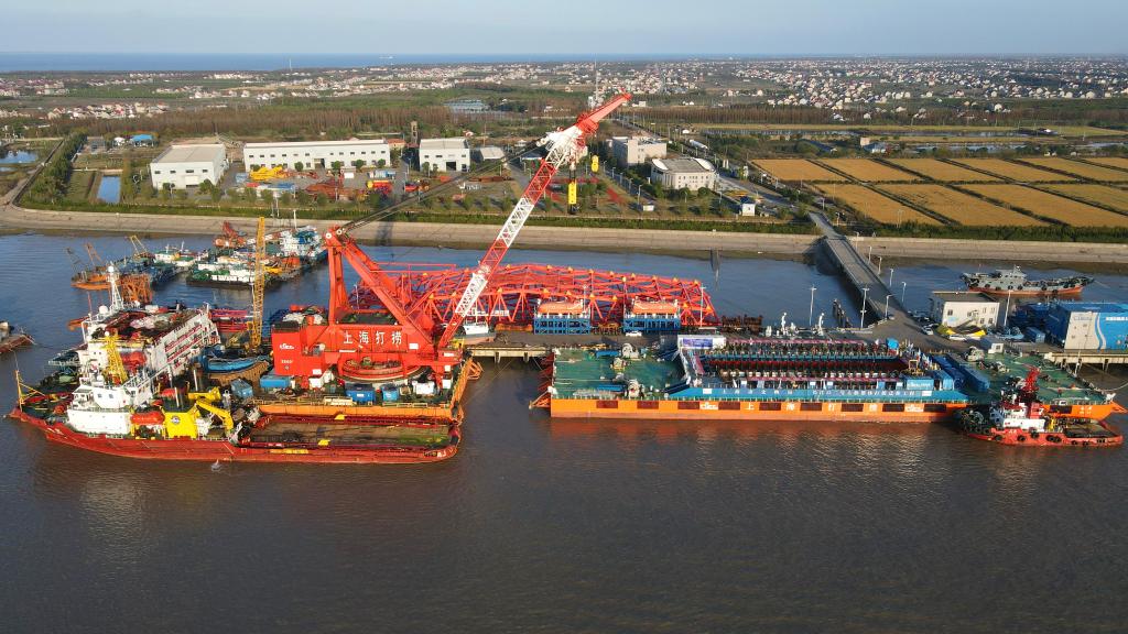 上海船厂旧址1号船坞在灌水(无人机照片,11月23日摄)。