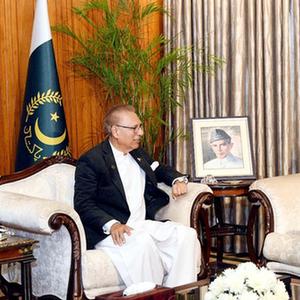 11月24日,巴基斯坦总统阿尔维(左)在首都伊斯兰堡会见候任参谋长联席会议主席萨希尔·沙姆沙德·米尔扎。
