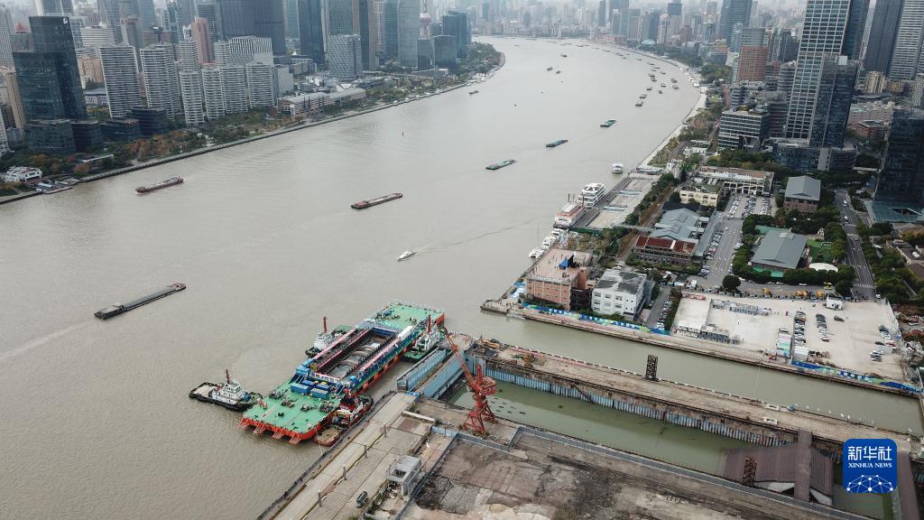 11月25日,“奋力”轮载着长江口二号古船停靠上海船厂旧址1号船坞,准备进坞。
