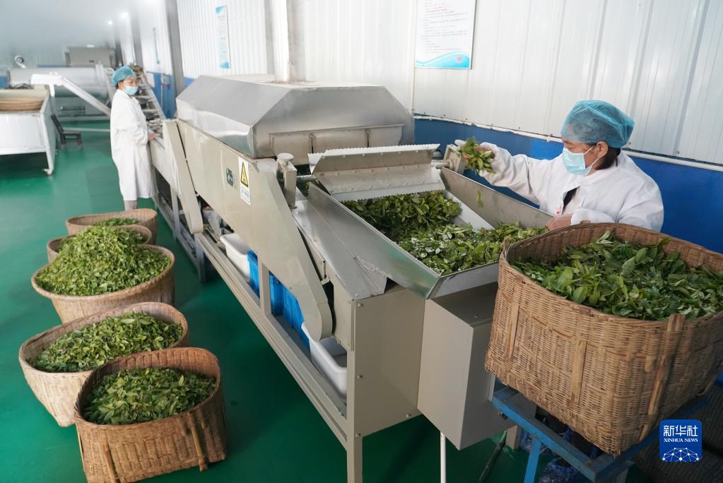 陕西安康市平利县八仙镇的工人在茶叶公司车间内工作(10月21日摄)。
