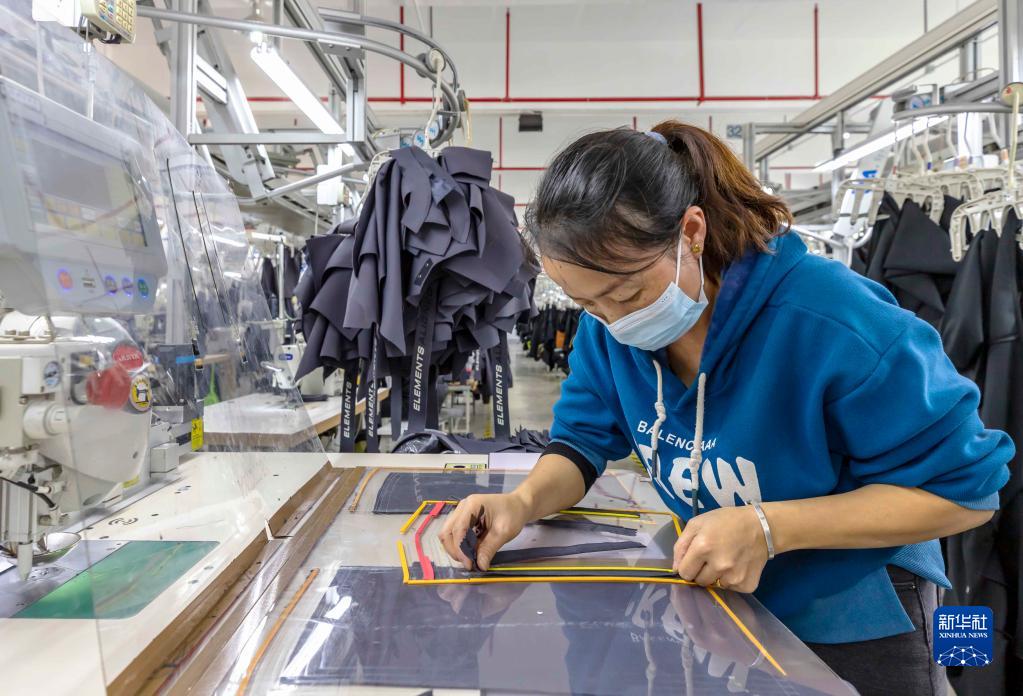 11月25日,员工在贵州省黔西市岔白工业园区一家服饰公司生产车间加工服装。