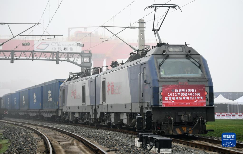 当日,满载家电产品的X8151次中欧班列从西安国际港站驶出开往欧洲。这是中国铁路西安局集团有限公司开行的首趟中欧班列家电出口专列,同时也标志着陕西中欧班列2022年开行突破4000列。
