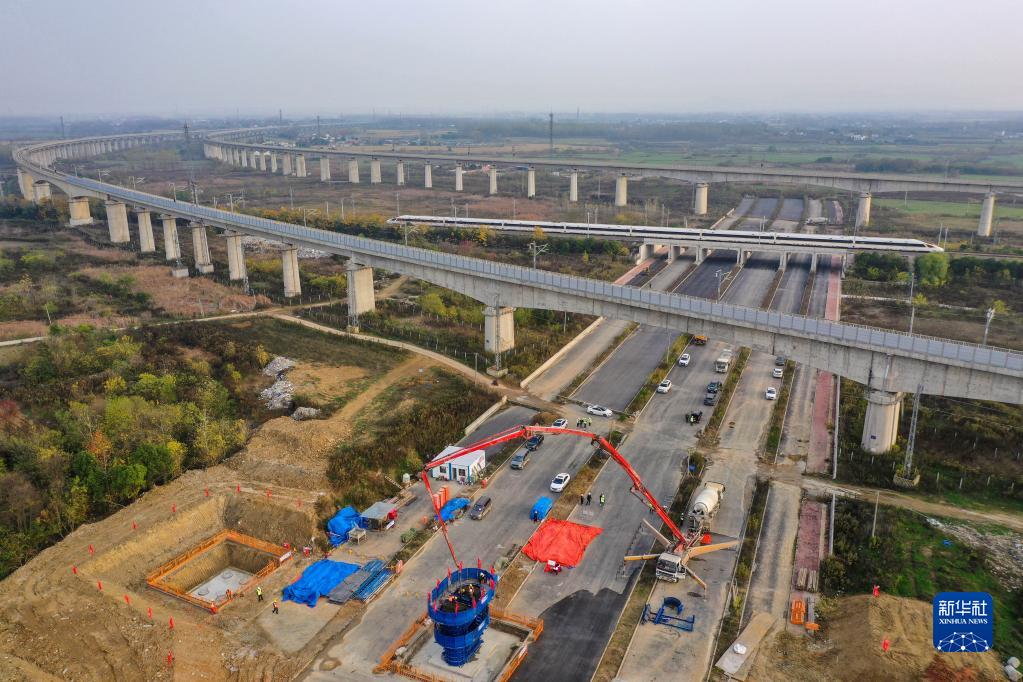 新华全媒+丨新建沪宁合高铁安徽段首根墩身浇筑完成