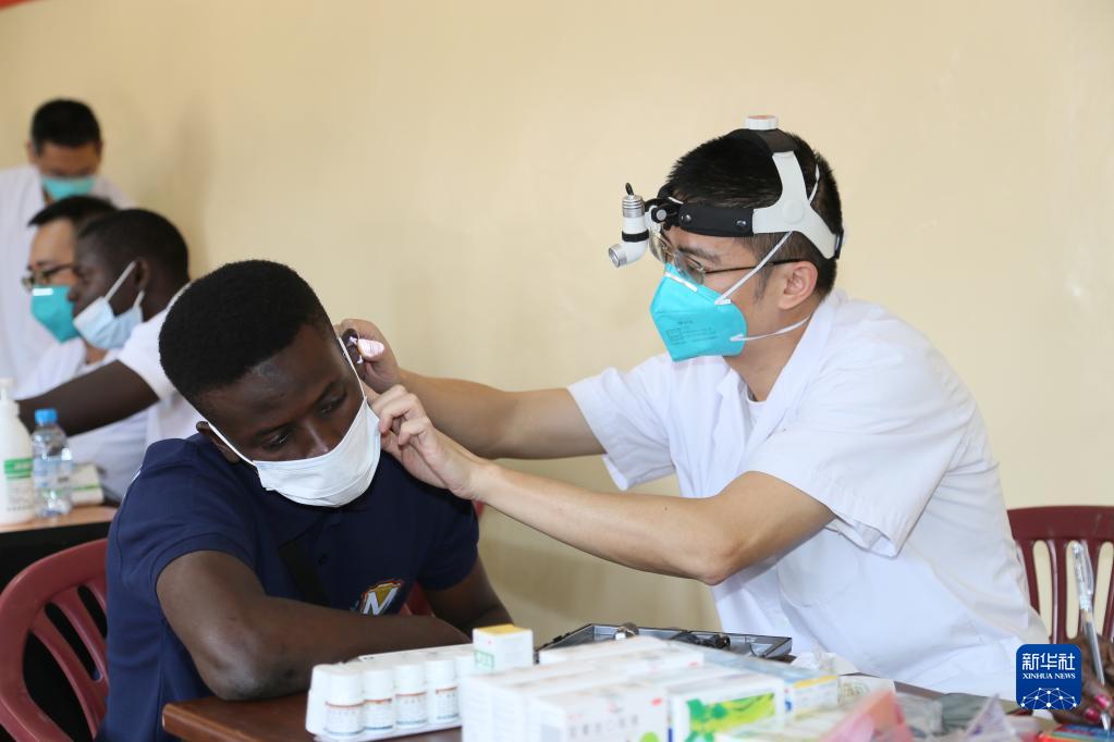 11月26日,在塞内加尔首都达喀尔,中国医生为病人进行诊疗。