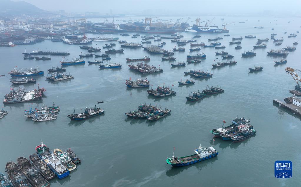 受冷空气影响,山东省荣成市大量渔船返回渔港,躲避寒潮、大风。