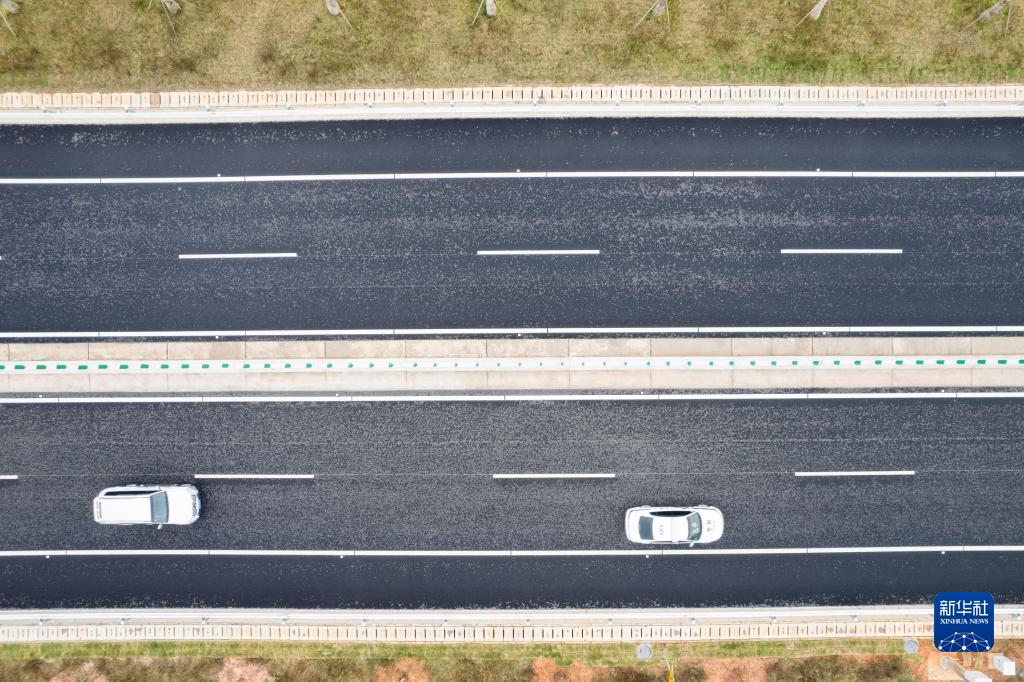 11月28日,汽车在湖南平益高速上行驶(无人机照片)。