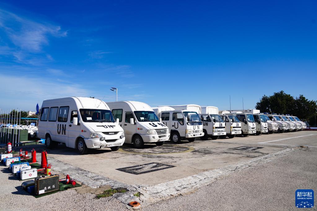这是11月28日在黎巴嫩南部辛尼亚村的中国维和部队营区拍摄的待检查车辆。