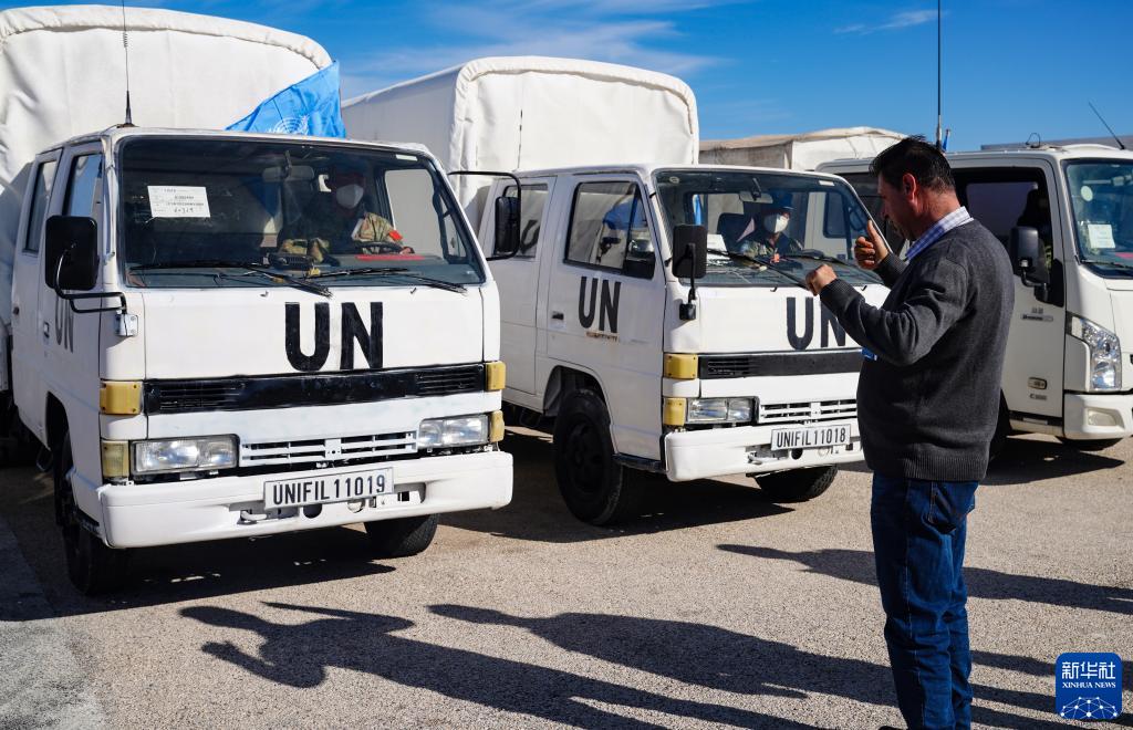 11月28日,核查官员在黎巴嫩南部辛尼亚村的中国维和部队营区检查车辆。