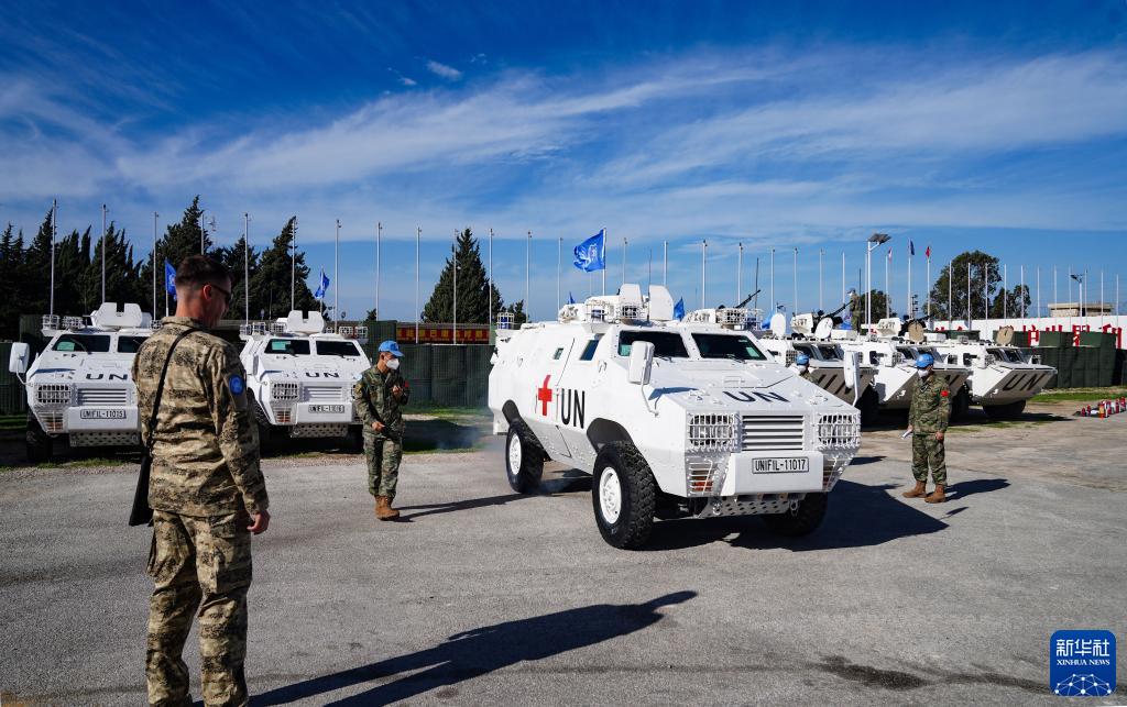 11月28日,核查官员在黎巴嫩南部辛尼亚村的中国维和部队营区检查车辆。