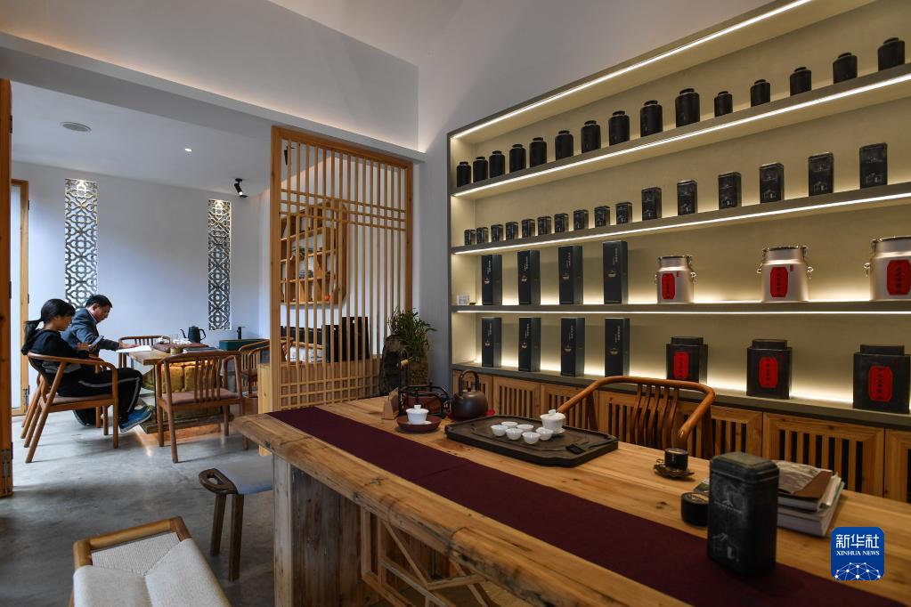 在潮州凤凰单丛茶核心产区凤凰镇,由当地老宅修缮改造而成的民宿为客人准备了冲泡工夫茶的休闲空间(2021年12月15日摄)。