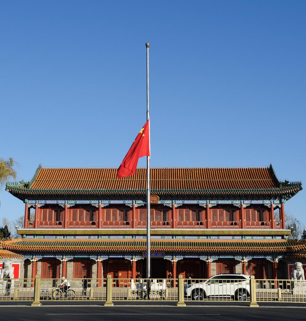 12月1日,北京新华门下半旗志哀,悼念江泽民同志逝世。新华社记者 彭子洋 摄