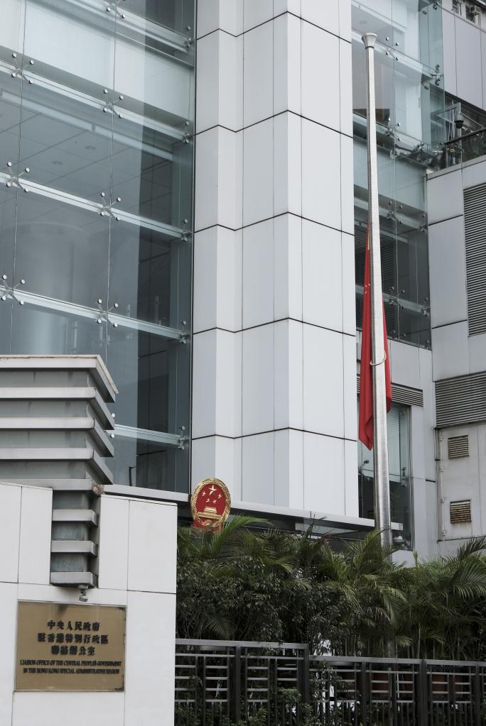 12月1日,香港中联办下半旗志哀,悼念江泽民同志逝世。新华社记者 王申 摄