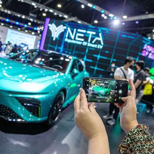 12月1日,观众在曼谷举行的第39届泰国国际车展哪吒汽车展台拍摄。
