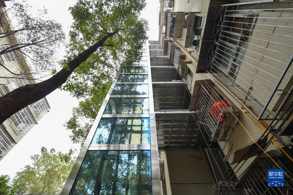 12月7日拍摄的长沙市天心区裕南街街道长坡社区木材厂宿舍一部待完工的外挂式电梯。