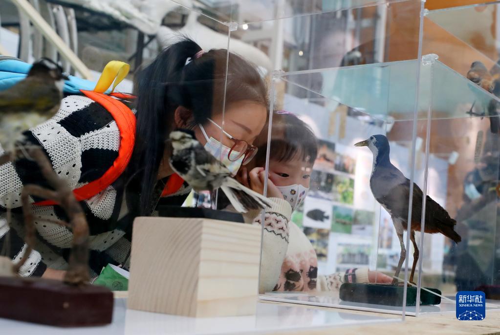 12月7日,参观者在上海自然博物馆观看白胸苦恶鸟标本。