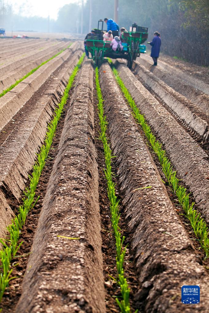 12月7日,在河南省焦作市博爱县下期城村,村民在种植大葱。