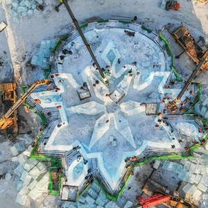 哈尔滨冰雪大世界冰建施工总体进度过半
