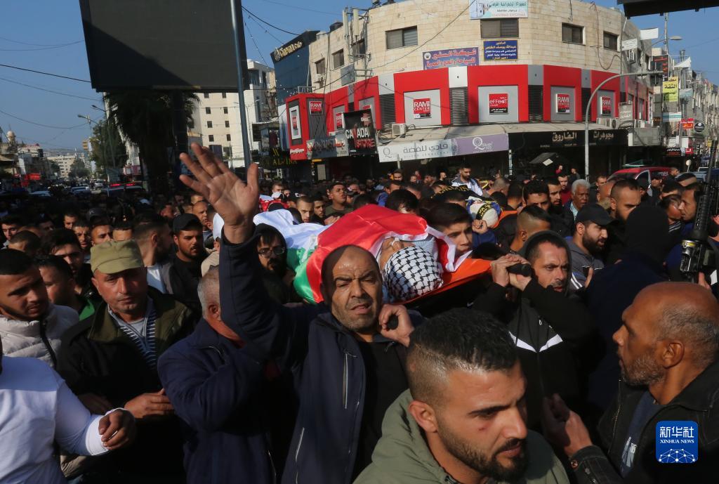 12月8日,在约旦河西岸北部城市杰宁,人们为被以色列军队打死的巴勒斯坦人送葬。