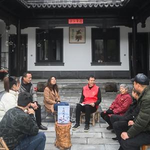 12月9日,在杭州市临安区太阳镇上庄村,党员志愿者和村民们一起参加家风故事会。