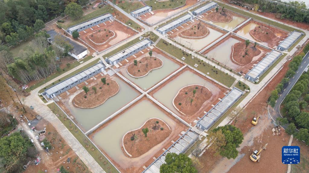 11月30日在安徽扬子鳄国家级自然保护区夏渡片区拍摄的基本竣工的扬子鳄人工繁育设施升级改造项目主体工程(无人机照片)。
