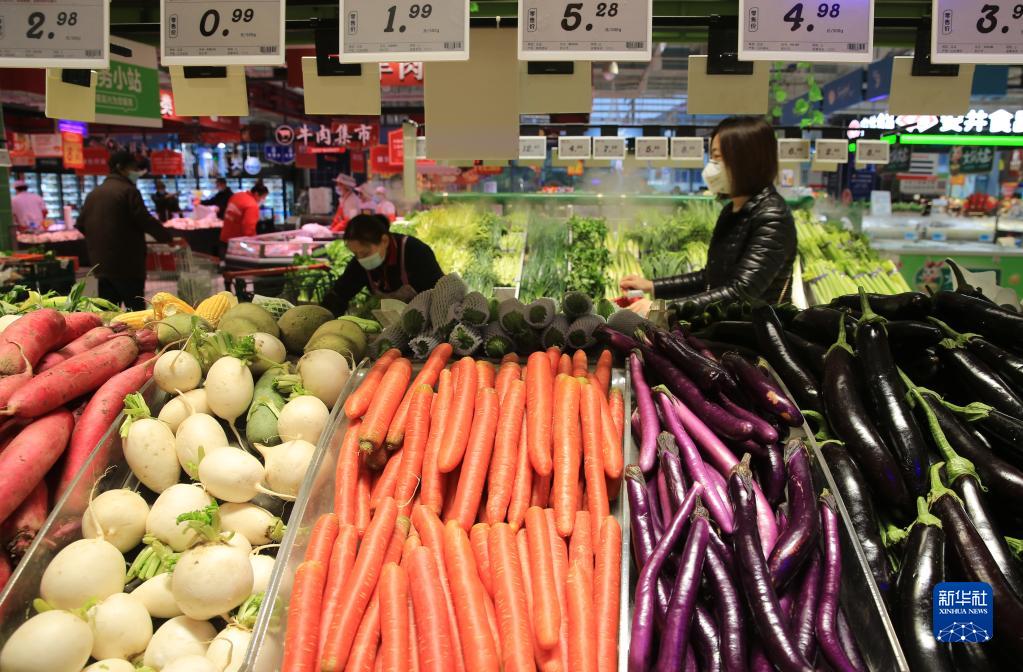12月9日,顾客在江苏省无锡市一家超市内选购蔬菜。