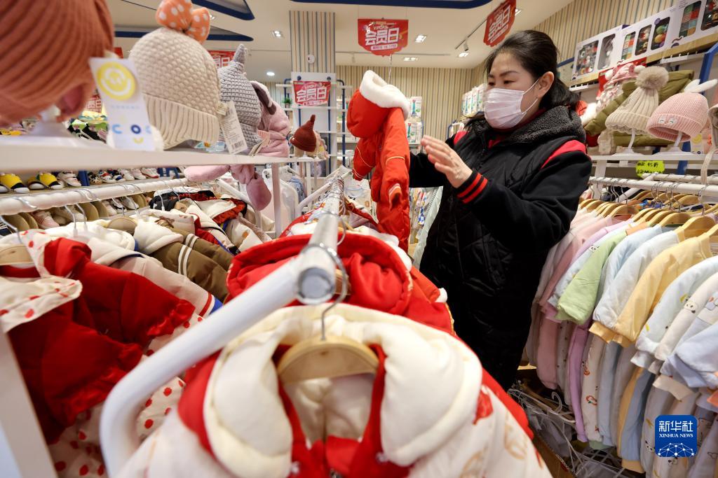 12月9日,顾客在山东省枣庄市一家超市选购儿童服装。