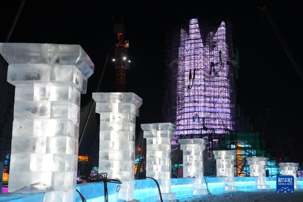 第24届哈尔滨冰雪大世界园区主塔“冰雪之冠”于近日封顶,目前正处于灯光调试和细节打磨阶段。据悉,主塔布局以哈尔滨市花——丁香花为设计原型,塔高41米,用冰量11000立方米。