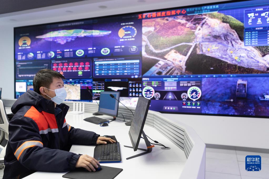在鹤岗市萝北县,中国五矿集团(黑龙江)石墨产业有限公司的工作人员在调度指挥中心内作业(12月9日摄)。