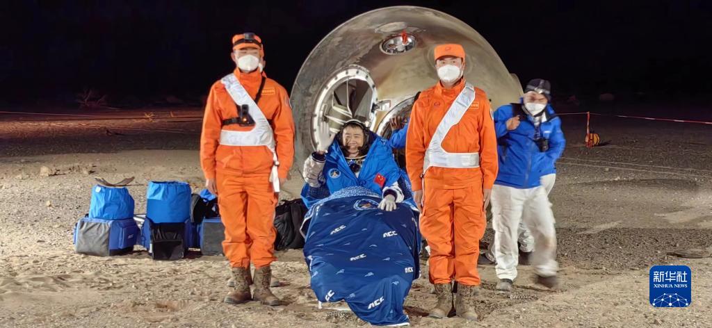 12月4日,神舟十四号载人飞船返回舱在东风着陆场成功着陆。这是航天员陈冬安全顺利出舱。