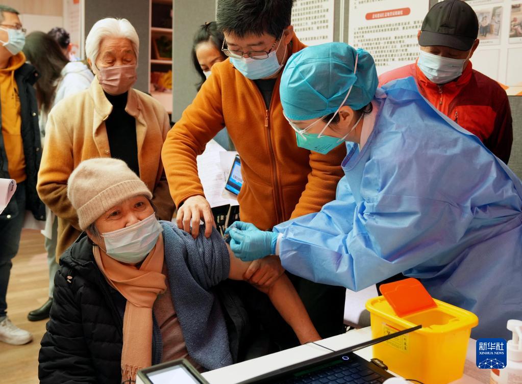 12月9日,接种小分队的护士在大同居委会为老年人接种新冠疫苗。
