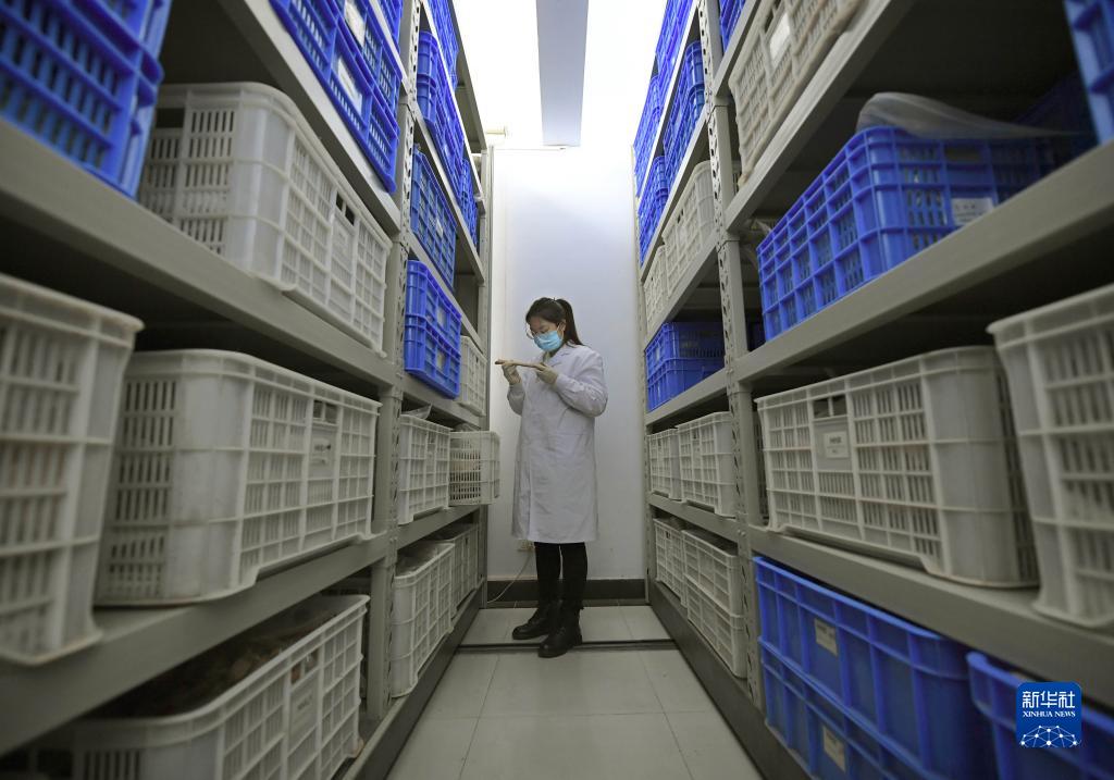 李彦桢在河南省文物考古研究院的标本库内观察肢骨(11月30日摄)。