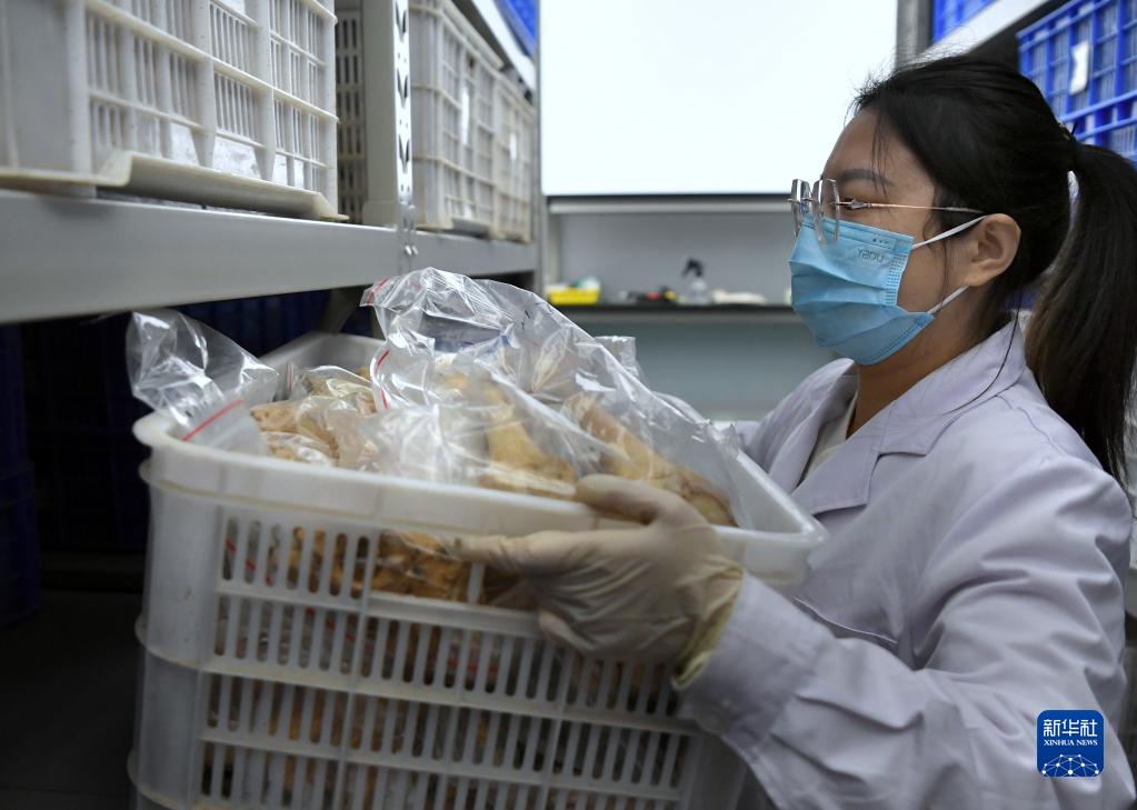 李彦桢在河南省文物考古研究院的标本库内拿取骸骨标本(11月30日摄)。