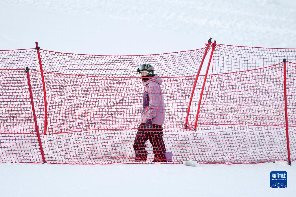 北京冬奥会单板滑雪男子大跳台冠军苏翊鸣在V-PARK地形公园内乘坐“魔毯”(12月10日摄)。