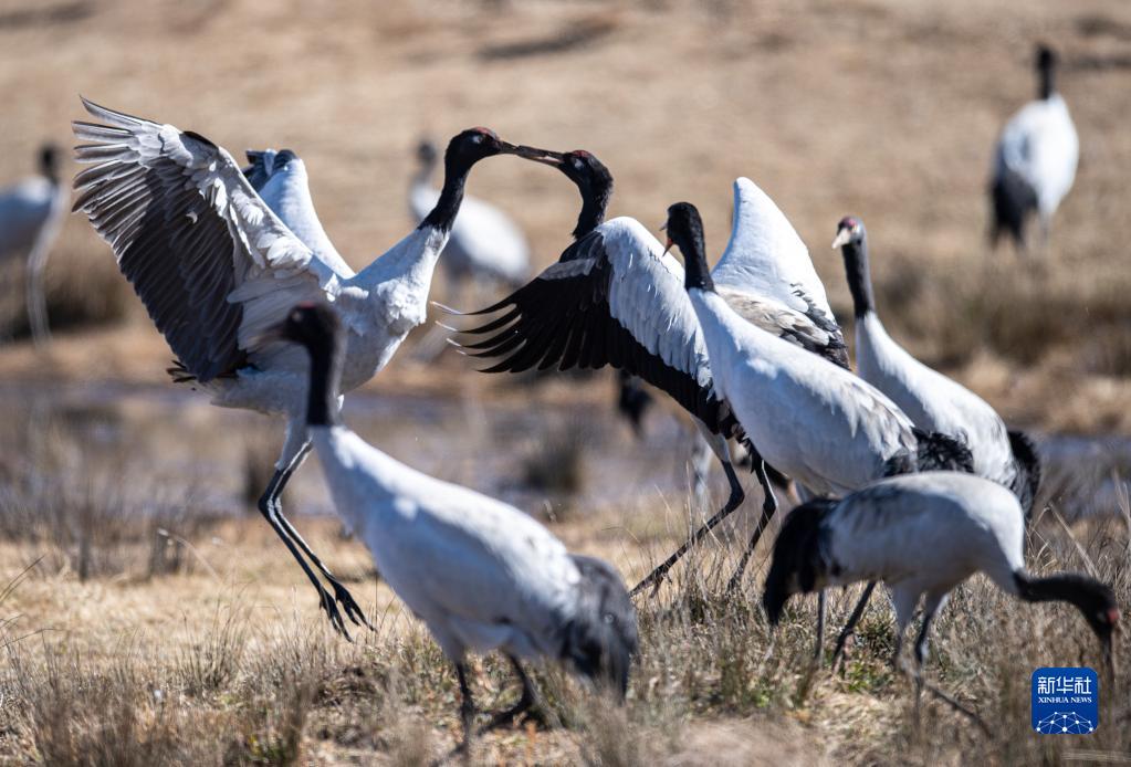 这是12月11日在云南大山包黑颈鹤国家级自然保护区内拍摄的黑颈鹤。