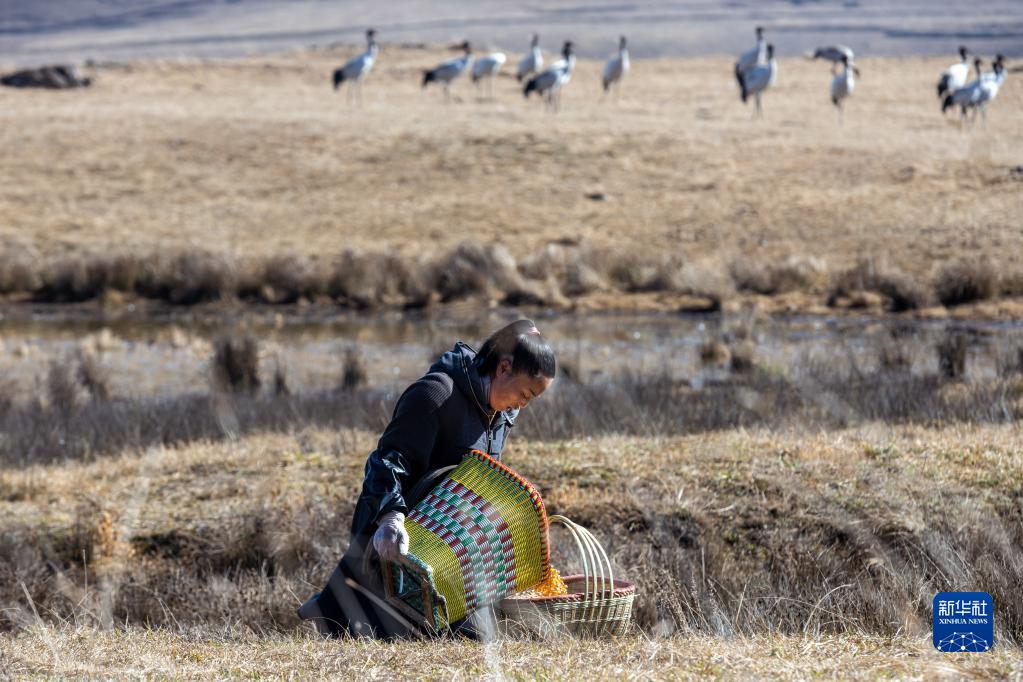 12月11日,陈光会在云南大山包黑颈鹤国家级自然保护区准备给黑颈鹤投食。