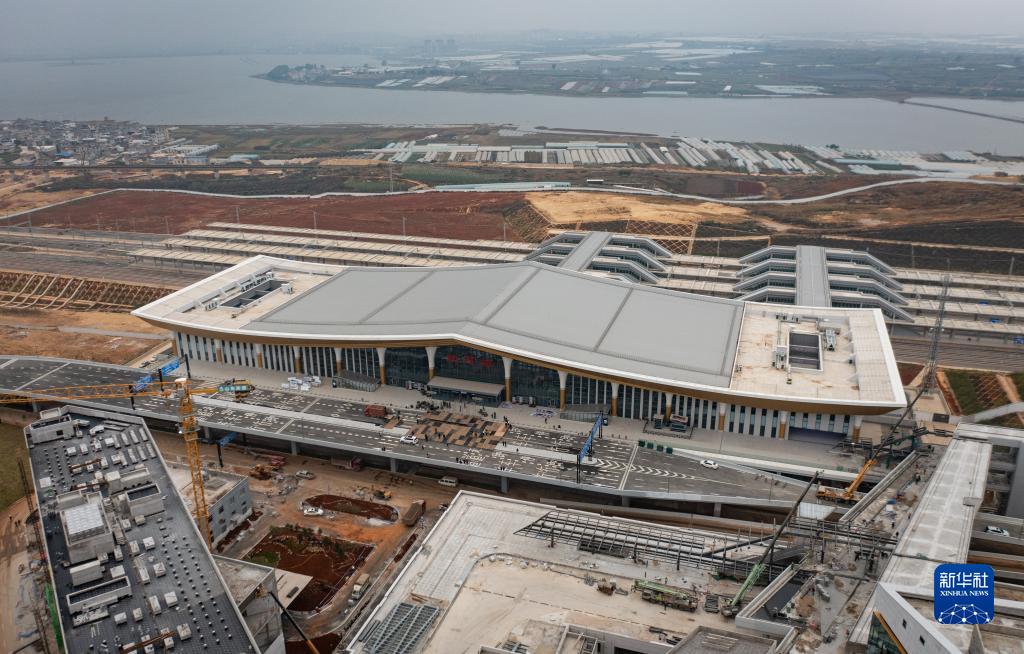 这是12月14日拍摄的弥蒙高铁红河站(无人机照片)。