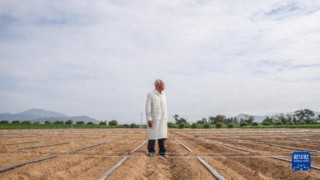 12月15日,玉米育种专家程相文站在三亚南繁科研育种基地一片待播种的地里。