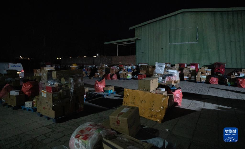 货物码放在京东快递天宫院营业部的场地上(12月15日摄)。