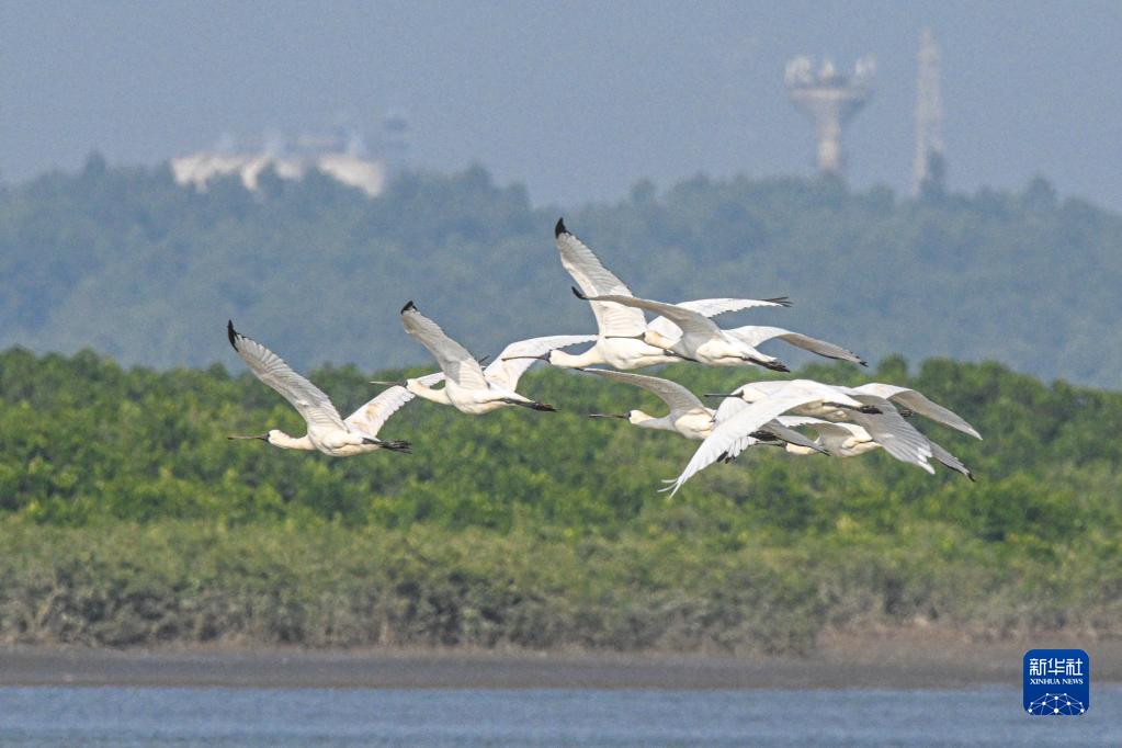 儋州湾位于海南省儋州市中北部,湾内遍布滩涂湿地。今冬,包括国家一级重点保护野生动物黑脸琵鹭和勺嘴鹬在内的大批候鸟飞抵儋州湾越冬。近年来,当地不断加强对湿地和鸟类的保护,湿地生物多样性日益丰富。