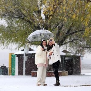 12月16日,在江苏省淮安市,游人在洪泽湖古堰景区玩雪。