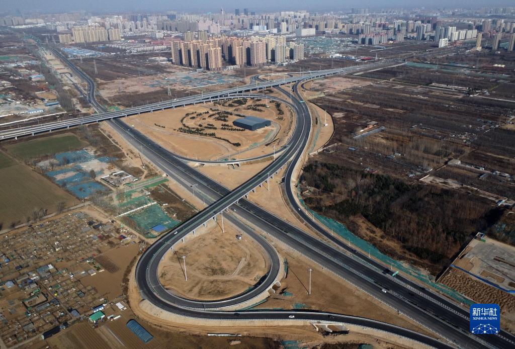 12月15日拍摄的已竣工通车的石家庄市南二环东延与复兴大街互通立交桥(无人机照片)。