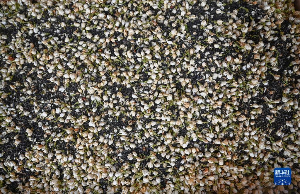 这是12月16日在福州茉莉花茶制茶工坊拍摄的静置等待重复窨次的茉莉花茶。