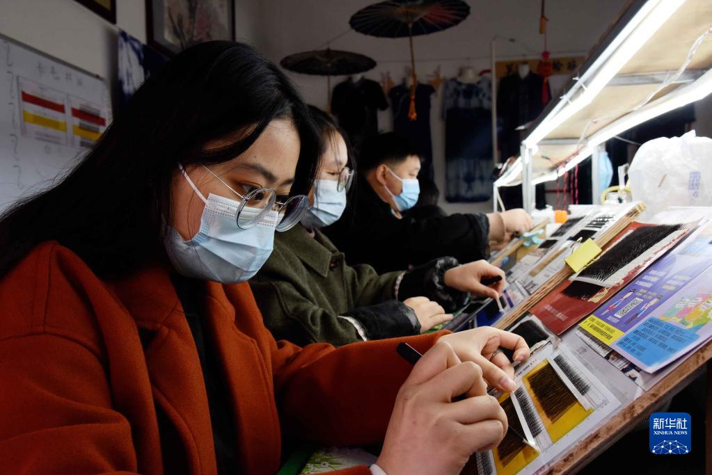 12月17日,工人在贵州省黔南布依族苗族自治州福泉市经开区一就业帮扶车间加工美容用品。