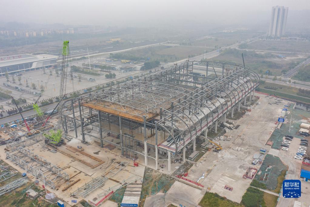 这是12月16日拍摄的重庆市永川区会展中心项目施工现场(无人机照片)。