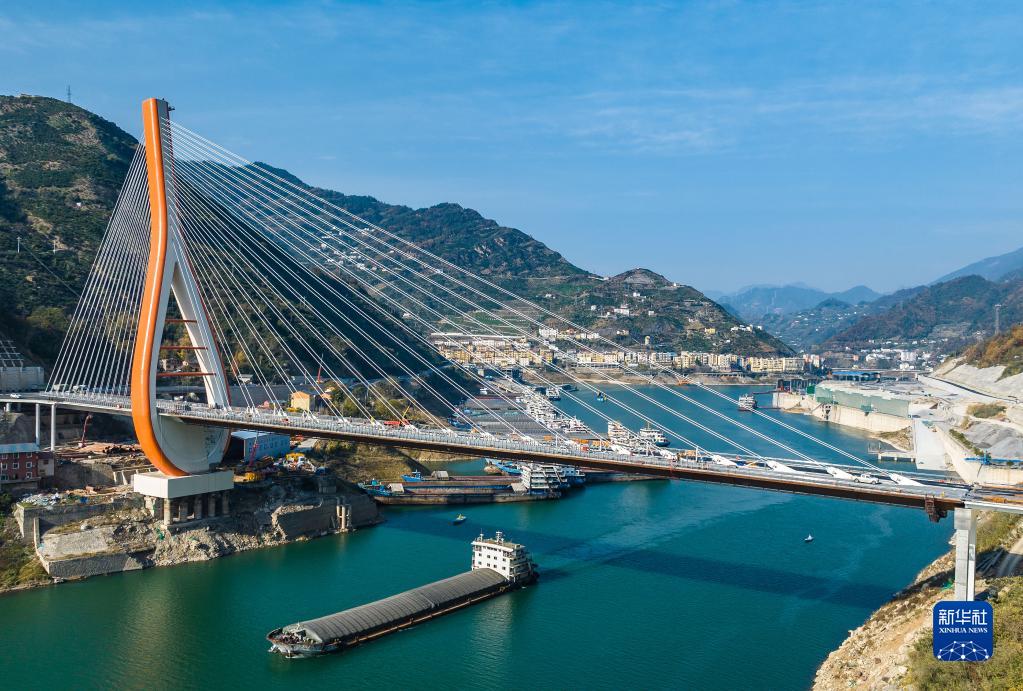 湖北省宜昌市香溪河上“琵琶形”独塔斜拉桥主体结构基本建成,塔身采用顺桥向倾斜10度的琵琶造型。香溪河因昭君出塞而得名,是长江的支流,从长江三峡西陵峡上游峡口汇入长江。该桥是连接宜昌市兴山县和秭归县的重点交通枢纽工程。